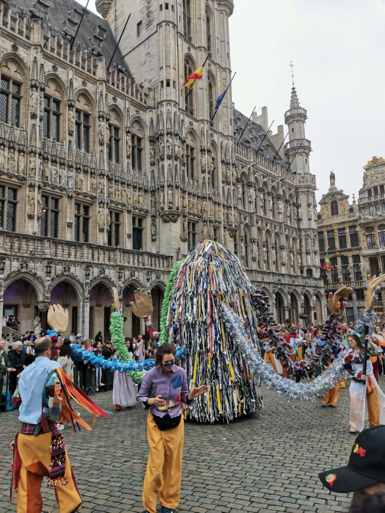 Les ados ont vaillamment poussé notre monstre-char en agitant ses bras élancés pour le plus grand plaisir de petits et grands jusque devant les marches de la Bourse et les porte de l’Hôtel de Ville.