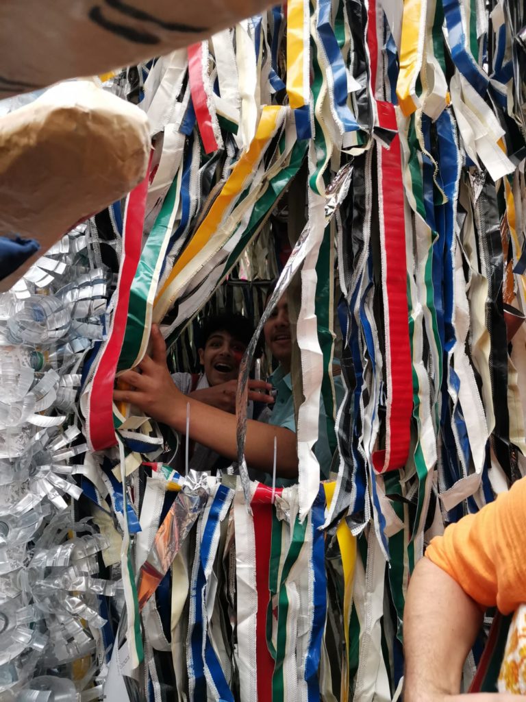 Entre moule en argile pour réaliser des masques fantastiques, joyeux tintamarre de percussions endiablées afin d’élaborer une chorégraphie envoutante et récolte de déchets pour la déco du char, les jeunes ont mis la main à la pâte pour préparer le grand jour.